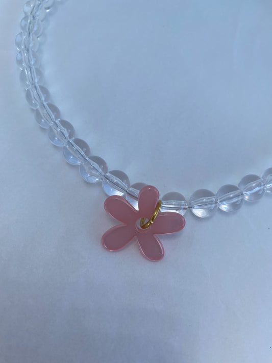 TRANSPARANT BEADS X FLOWER necklace