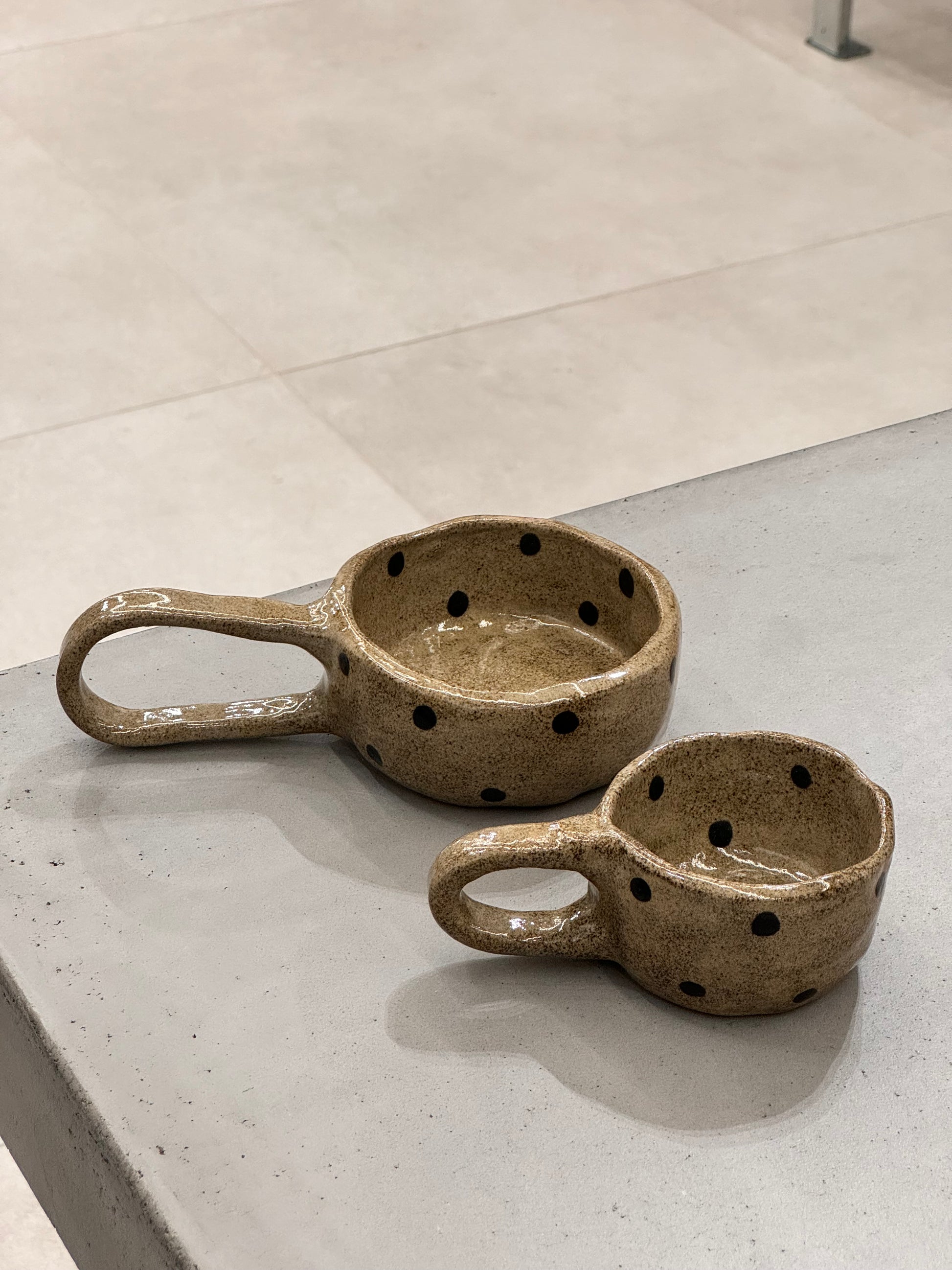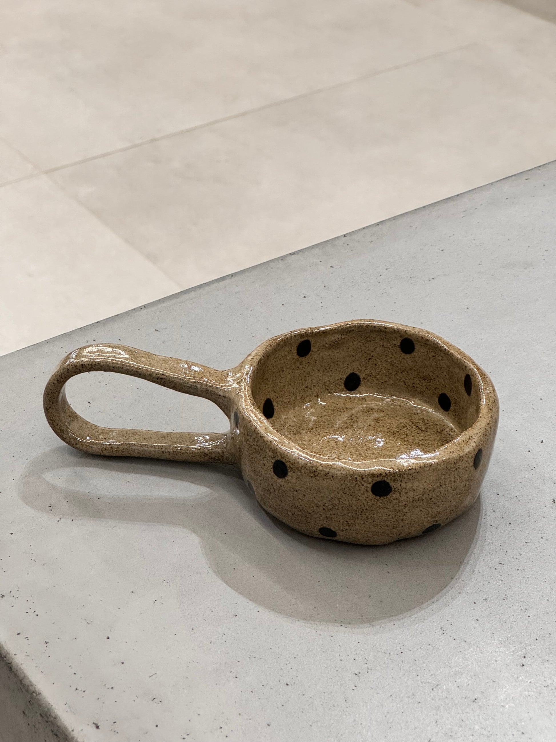 Chunky ceramic coffee mug with dots, a wink to our little puppy Dottie. A fun add for your energetic mornings <3 Or even to use as a little art piece :)