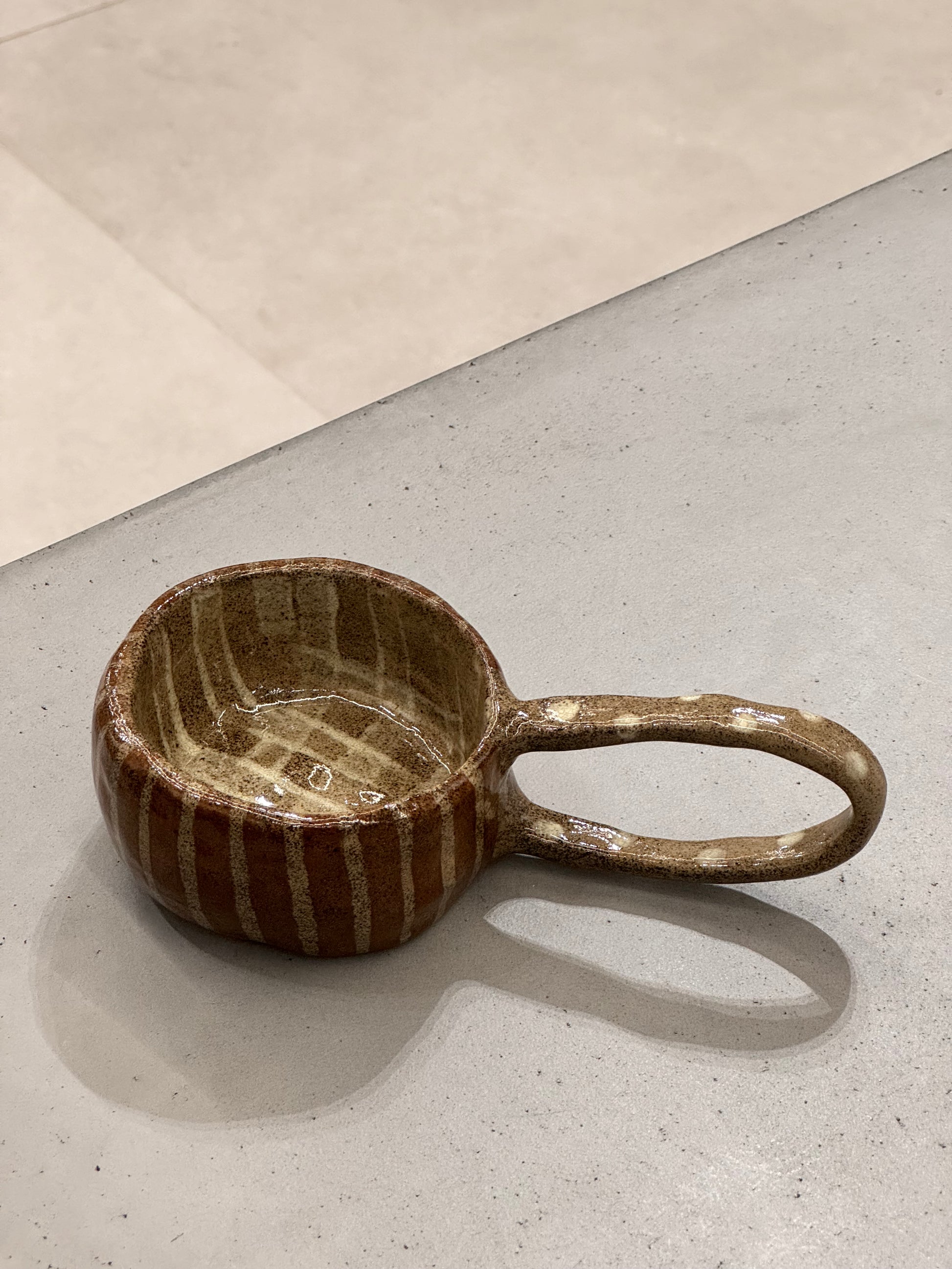Chunky ceramic coffee mug with stripes, dots & checks. A fun add for your energetic mornings <3